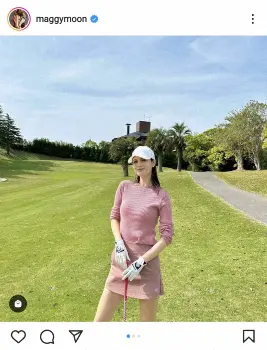 マギー ピンクのミニ丈ゴルフウエア姿に「かわいい」「短いのはくとスタイルいいの際立つから好き」の声
