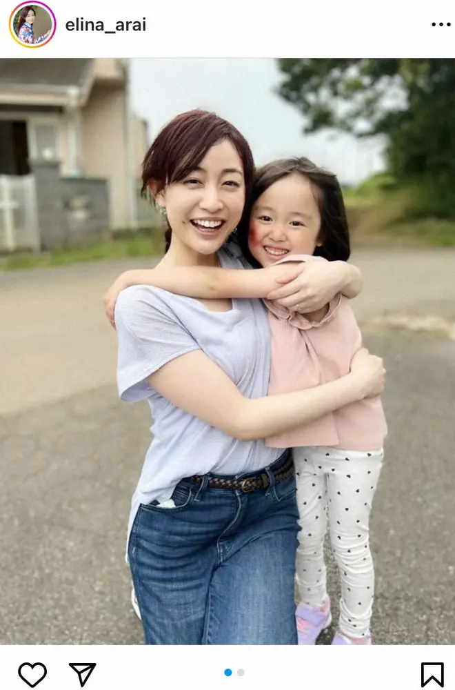 人気フリーアナウンサーの新井恵理那(33)が22日、自身のインスタを更新し、女の子とのツーショット写真を掲載した。