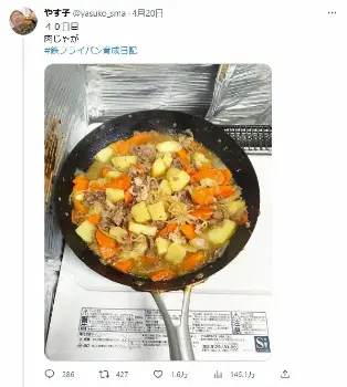 やす子は「40日目 肉じゃが #鉄フライパン育成日記」といい手料理を披露。しかし、これに「りっ 量が」「大量ですね」など、複数人で食べるのでは、というイジるコメントがついた。