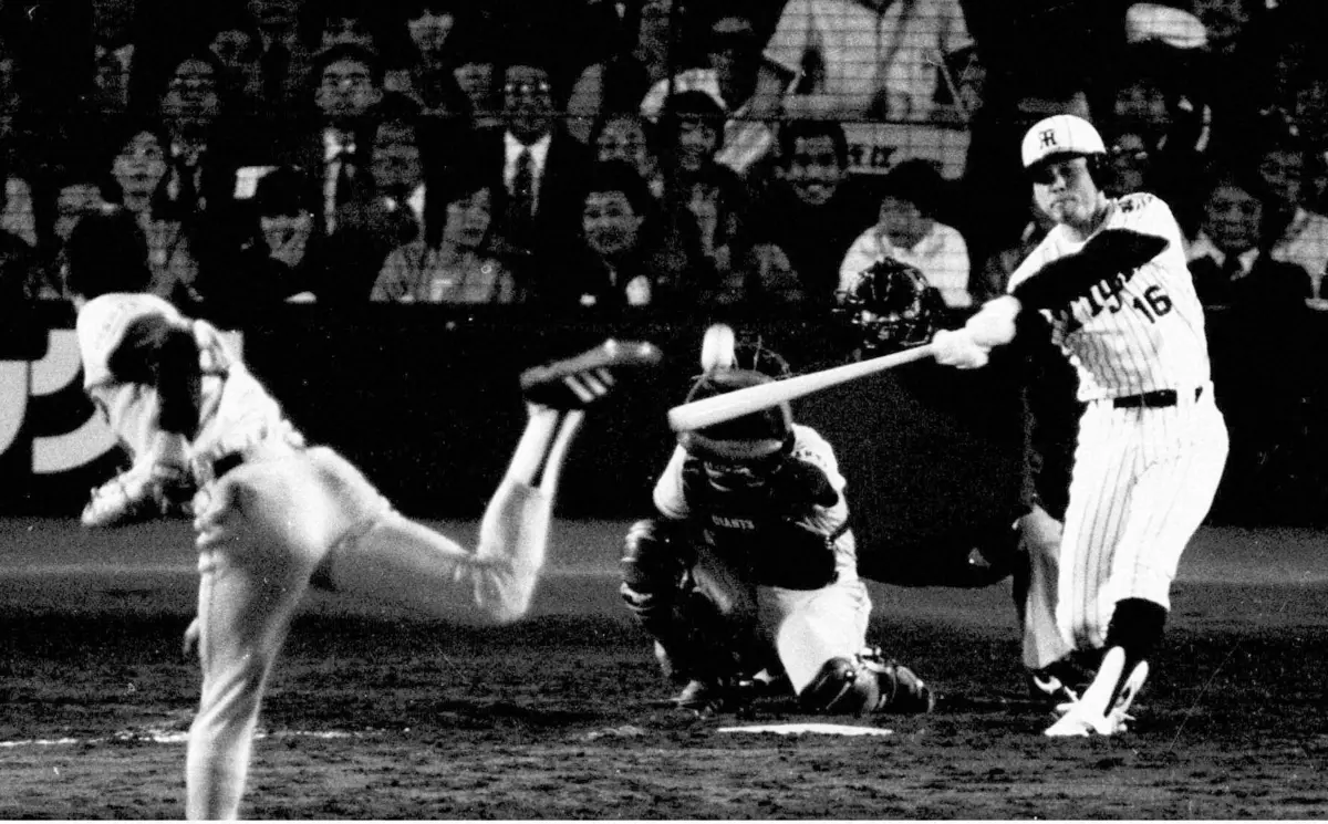 1985年4月17日、甲子園球場で岡田に3者連続本塁打となる中越えアーチを被弾する槙原