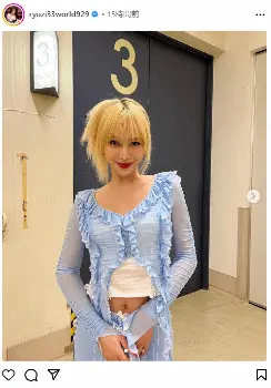 「泣きたい時は泣いてもいいよね」と意味深な言葉を添え、金髪にヘソ出しで水色のタイトな洋服を着ている姿をアップした。