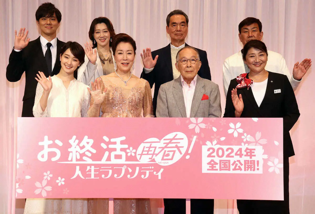 21年の「お終活 熟春!人生、百年時代の過ごし方」の続編で「年齢の高い人の群像劇で、人生は慈しみ合っていこうという思いにあふれた映画です」とアピール。シャンソンに挑戦する設定だが「当たって砕けろという感じ。台本にうまく歌うとは書いていないが、生きた心地がしない」と身をすくませていた。