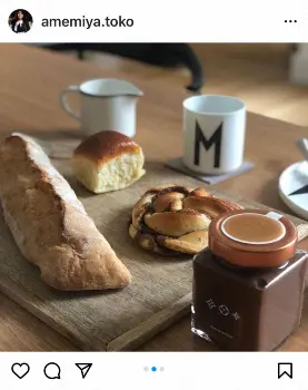 そのうえで「前にLV DREAMに行った時、併設のチョコレートショップで売り切れで買えなかった『マキシム・フレデリック アット ルイ・ヴィトン』のチョコペーストと、グルメ姉さん、篠さんのおすすめで買って以来、大好物の9区のパン屋さんのシナモンロール、ブリオッシュでザ、フレンチな朝食を」とつづり、写真を公開した。
