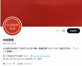 千葉県松戸市の中華料理店「中華東東」が28日までにツイッターを更新。テレビ番組で紹介されたことで来客が増えた反響に感謝する一方、店を切り盛りする女性店員にプライベートな詮索をする客へ注意喚起した。