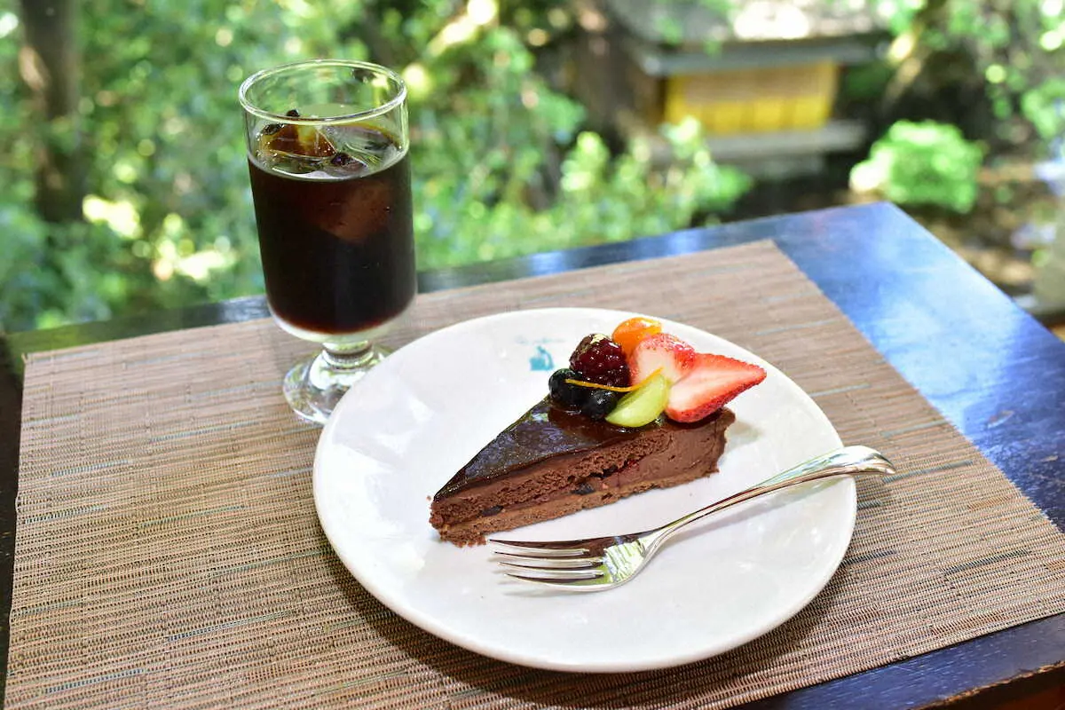 渡辺名人の午前のおやつは「漆黒の甲冑と徳川四天王タルト」とアイスコーヒー(日本将棋連盟提供)