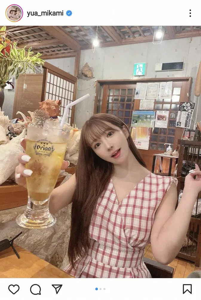SKE48の元メンバーでタレントの三上悠亜(29)が29日、自身のインスタグラムを更新。沖縄で食事を楽しむ姿を披露した。