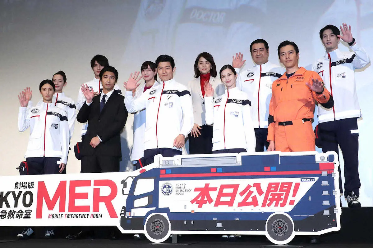 21年7月期のTBS日曜劇場の映画化で、災害などで死者ゼロを目指す医療チームを描く。共演の賀来賢人(33)中条あやみ(26)らと役衣装で登壇し「(新型)コロナや時間などいろんなものとの闘いがある、大変な状況の中で(ドラマの)撮影が始まった。2年前から考えると、全員でここに立っているのが信じられない」と感慨深げ。客席を見渡し「拍手と皆さんの顔を見るだけで胸がいっぱい」と感動をかみしめた。