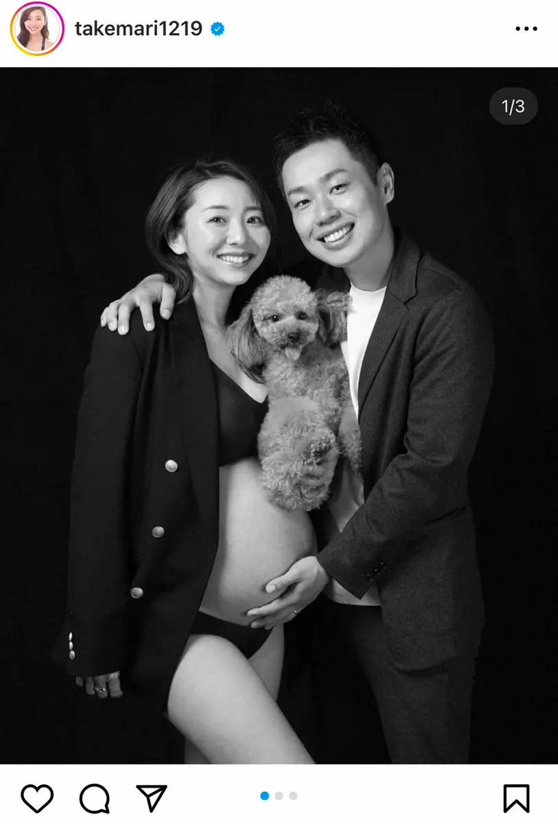 竹脇は「先日、元気な第一子の女の子を出産致しました」と発表。「4時間半のスピード安産で母子共にとても健康的に過ごしています!」とつづり、マタニティフォトや赤子の手を握る写真をアップした。