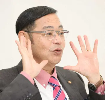「お忙しいところすみません」。取材部屋に入ってすぐに1メートル81の体を折り曲げてあいさつすると、場の空気が一気に和らいだ。銀縁の眼鏡にぽてっとした分厚い唇が印象的だ。「年齢、経験、気持ちを積み重ねていって今の顔がある。なるべくそれが朗らかでいられれば幸せだな」。おでこにくっきりと浮かんだ横しわには、たくさんの出会いと経験が刻まれていた。