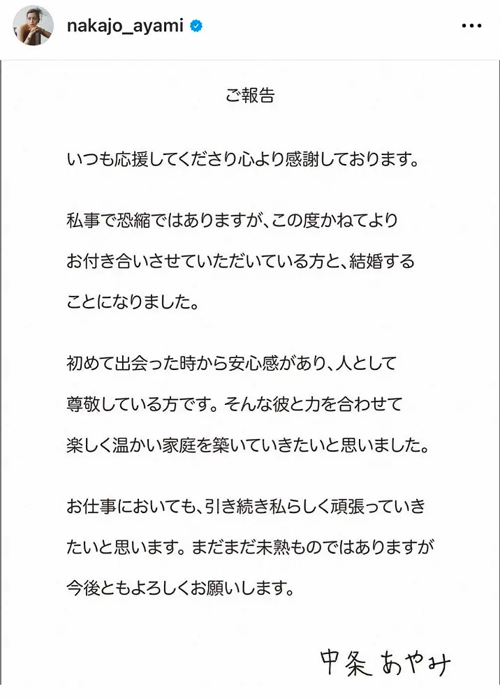 中条あやみ Photo by スポニチ 中条あやみが結婚発表 お相手は熱愛報道あった36歳ITベンチャー社長「人… ギャラリーで見る この記事のフォト 2023年05月01日の画像一覧 もっと見る 2023年05月01日の画像をもっと見る