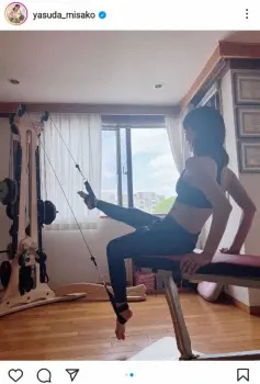 タレントの安田美沙子(41)が1日までに自身のインスタグラムを更新。黒のブラトップ&レギンスでジャイロトニックしているショットを披露した。