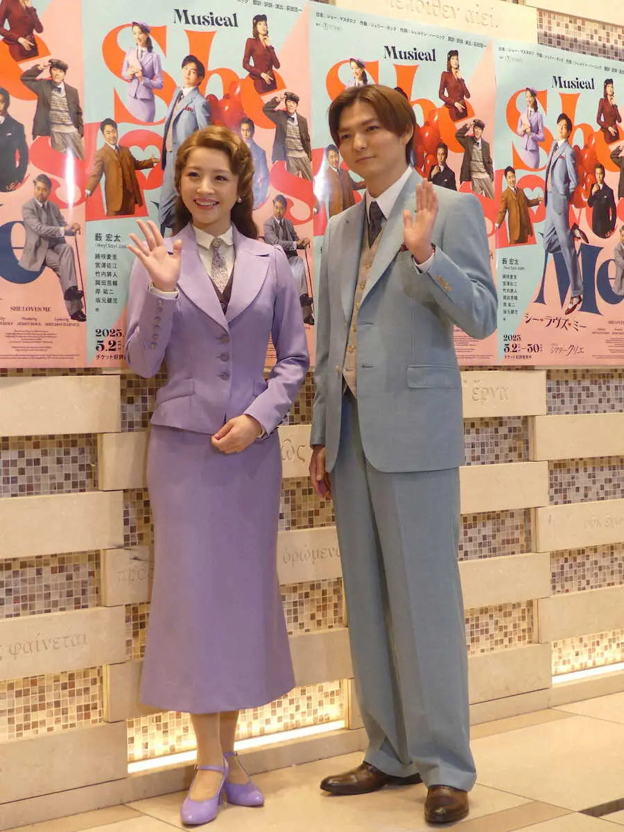 舞台「シー・ラヴズ・ミー」の会見に出席した綺咲愛理、薮宏太