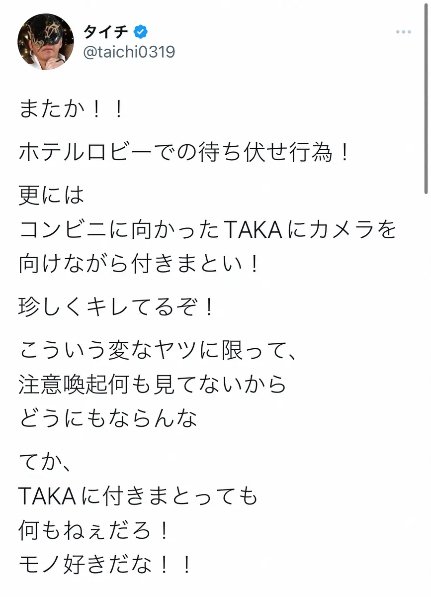 新日本プロレスのタイチ Photo by スポニチ 注意喚起も、続く迷惑行為に新日本プロレス・タイチ「またか!」 ビッグ… ギャラリーで見る この記事のフォト 2023年05月03日の画像一覧 もっと見る 2023年05月03日の画像をもっと見る