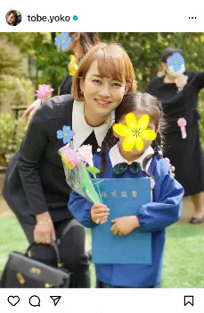 フジ戸部洋子アナ「娘っこの1年生も1ヶ月たった」 愛娘との2ショット披露「随分成長した気がする」