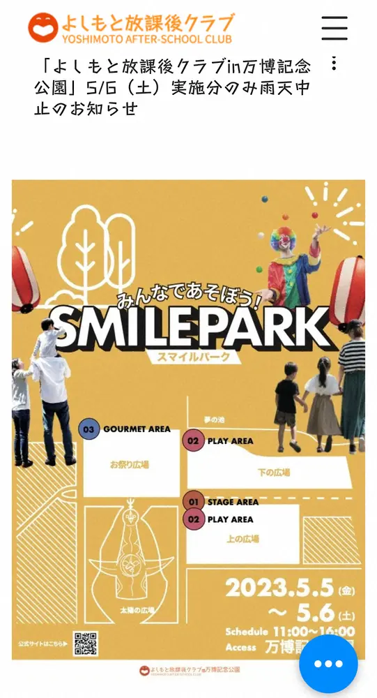 万博記念公園でのイベント「よしもと放課後クラブ」、悪天候予想される6日の開催中止を発表 5日は開催