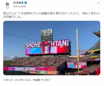 そんな大谷について、ひろゆき氏は「実はテレビで大谷翔平さんの活躍を見た事がなかったので、初めて見たのが肉眼でした」と驚きの告白。本拠地・アナハイムでの試合を現地観戦したと思われる動画を合わせて投稿した。