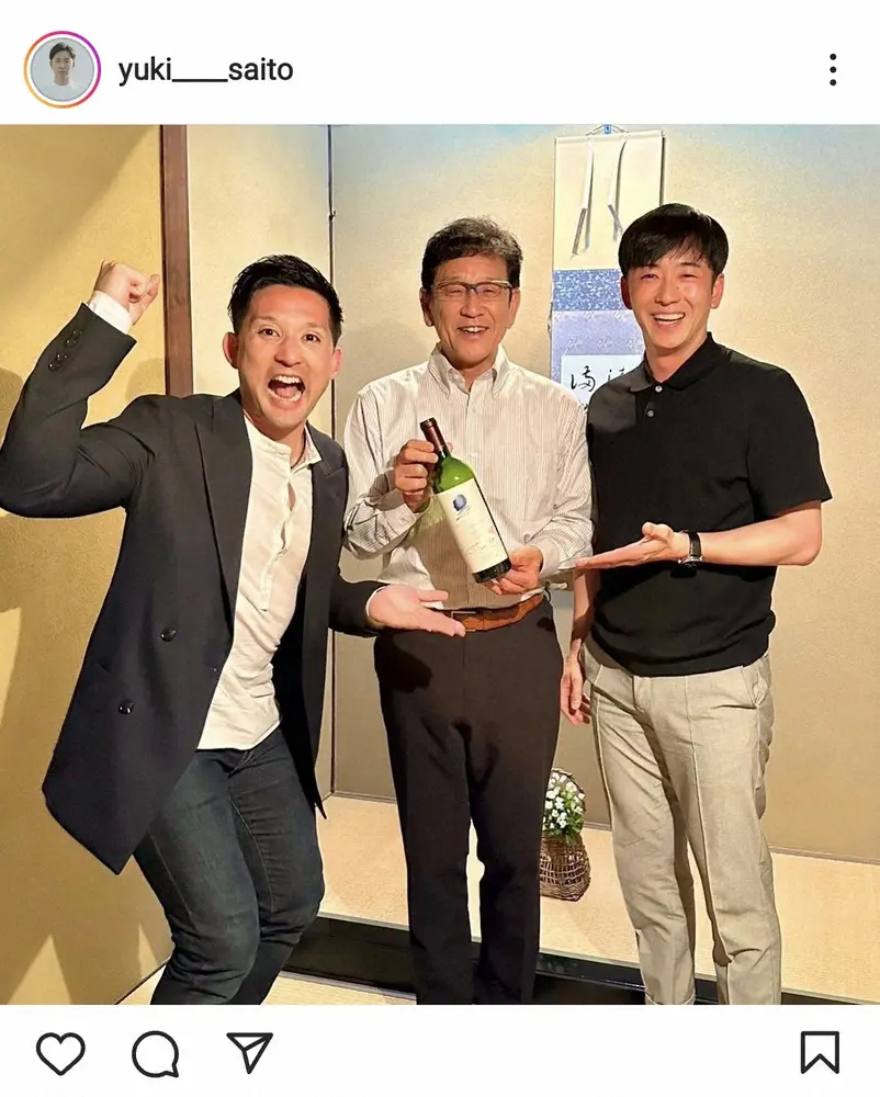 元日本ハムの斎藤佑樹氏(34)が7日、自身のインスタグラムを更新。侍ジャパンの栗山英樹監督(62)と、元日本ハムの杉谷拳士氏(32)と食事をしたと報告し、3ショットを披露した。