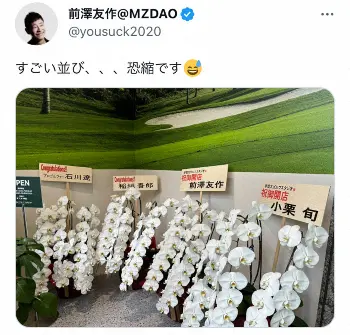 前澤友作氏「すごい並び、、、恐縮です」開店祝いの胡蝶蘭並びに「ビックネームばかり」「豪華過ぎ」反響