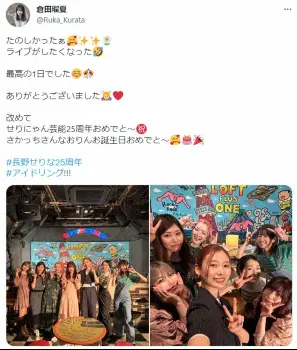 7日、「アイドリング!!!」同期・長野せりなが「芸能活動25周年」を記念したイベントを実施。朝日奈央、倉田瑠夏ら元メンバーが大集結し、長野は「ほぼ同窓会だったけど、メンバーが来てくれなきゃこんなに楽しい時間を作ることは不可能でした!」と喜びいっぱいに投稿していた。