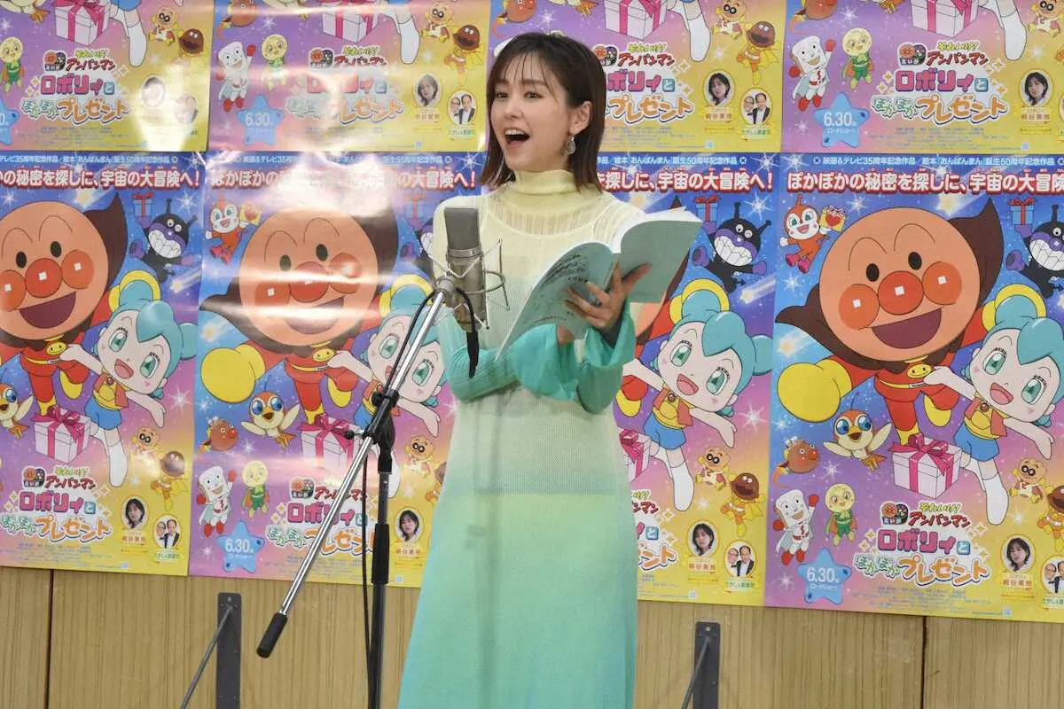 女優の桐谷美玲(33)が9日、都内でアニメ映画「それいけ!アンパンマン ロボリィとぽかぽかプレゼント」(6月30日公開)の公開アフレコを行った。