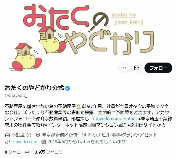 不動産会社「おたくのやどかり」の公式ツイッターが10日に更新され、執行役員であるweb漫画家で実業家・やしろあずき氏を解任したことを発表した。