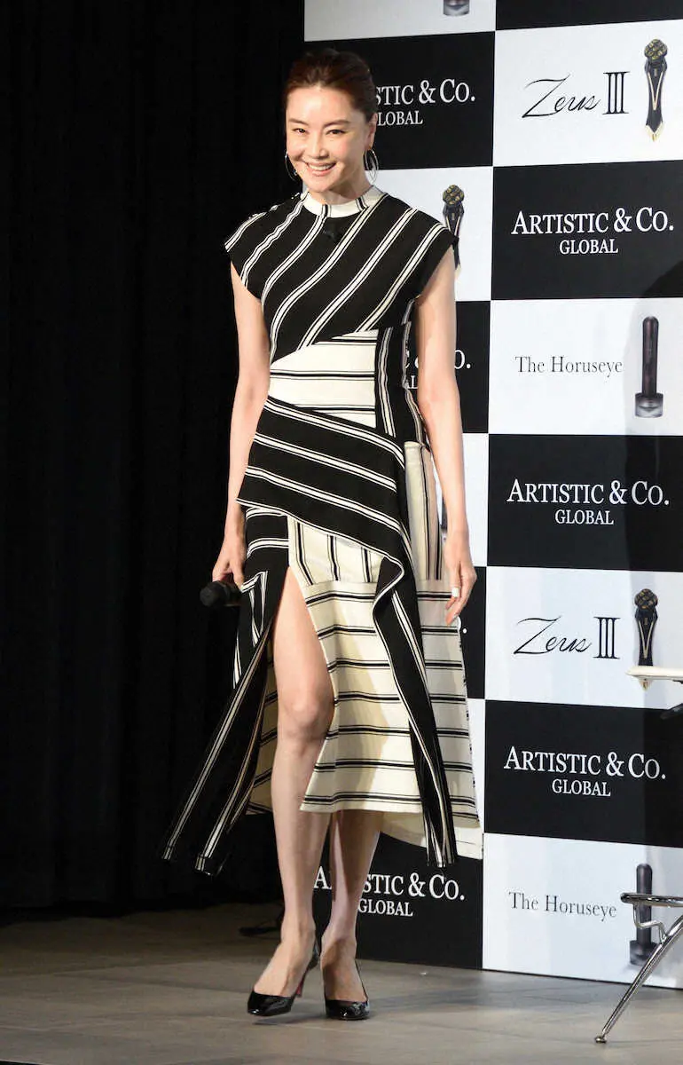 女優の観月ありさ(46)が11日、都内で美顔器メーカー「ARTISTIC&CO. GLOBAL」の新製品発表会に出席した。この日、観月は大胆なスリット入りのワンピース姿で登場し、美脚を披露。「思ったより激しくスリット入っててびっくりしました!」と笑った。