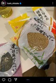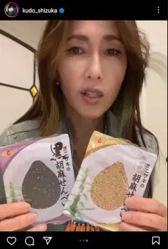 歌手の工藤静香(53)が11日までに自身のインスタグラムを更新。デニムシャツ姿で胡麻せんべいを“パクッ”と食べている様子を公開した。