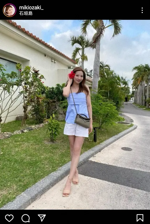 尾崎氏は、ゴールデンウイーク中、沖縄県を訪れ、石垣島のほか竹富島など離島でのショットもインスタに投稿している。