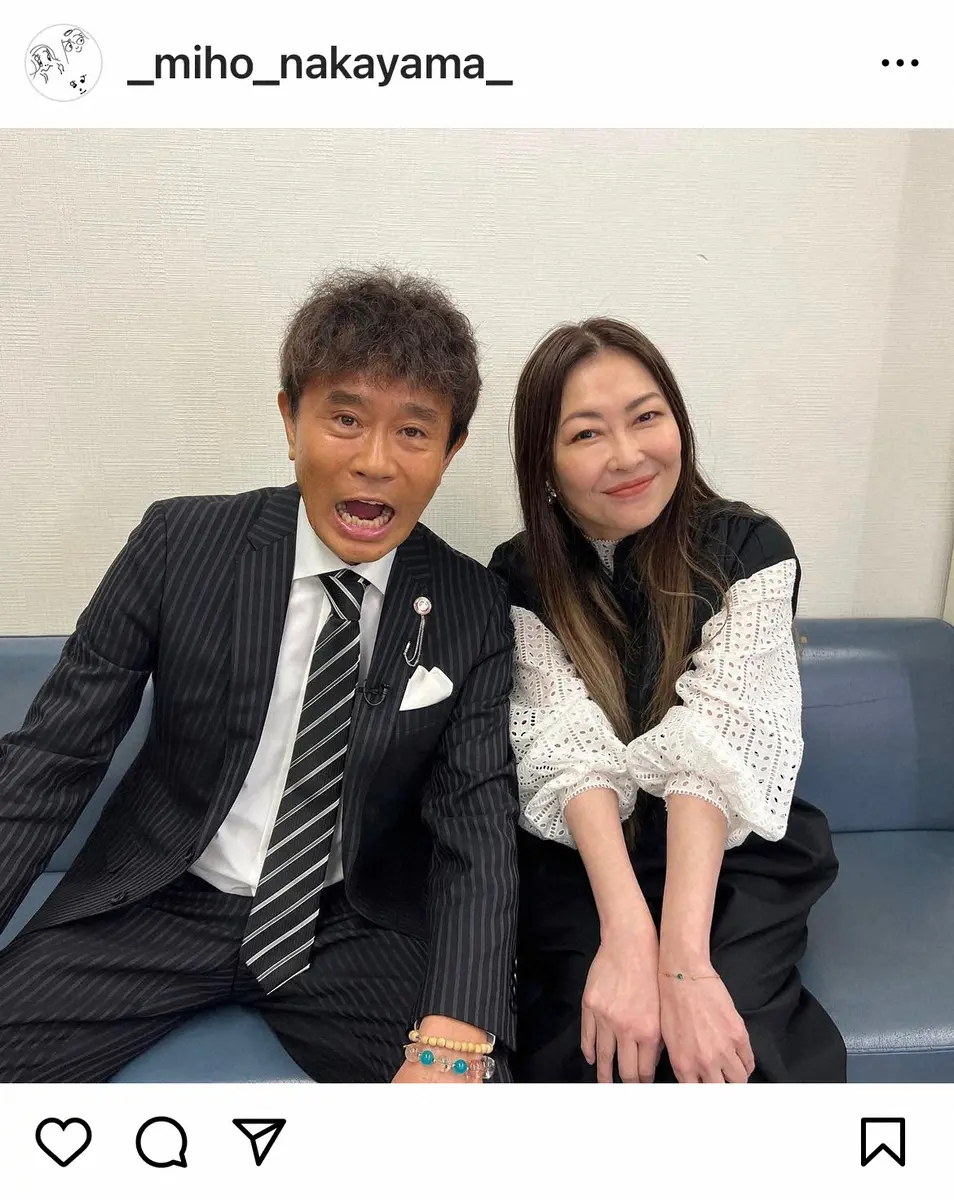 女優で歌手の中山美穂(53)が11日、自身のインスタグラムを更新。お笑いコンビ「ダウンタウン」の浜田雅功(60)の還暦をツーショット写真で祝福した。