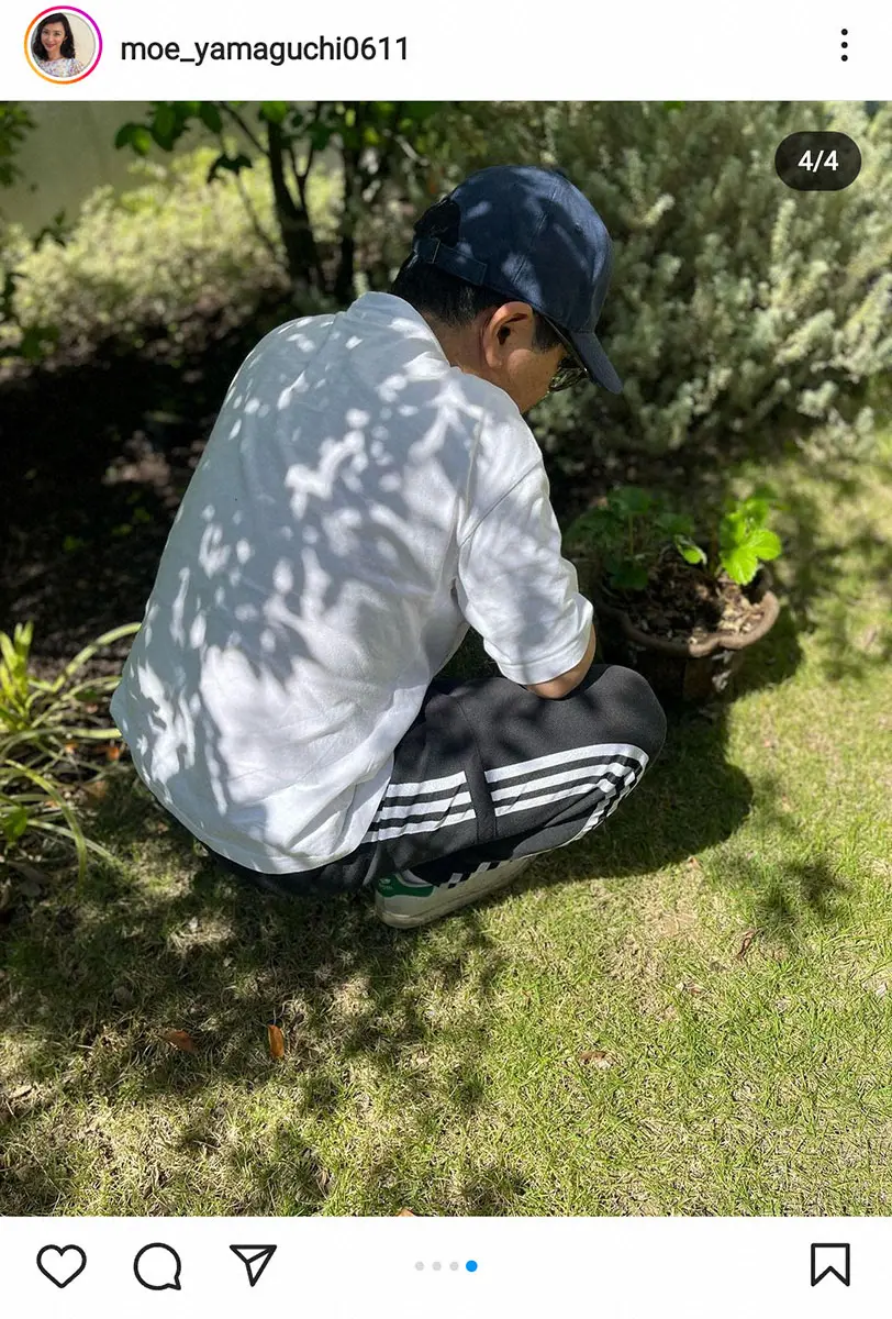 タレントの山口もえ(45)が12日、自身のインスタグラムを更新し、夫でお笑いコンビ「爆笑問題」田中裕二(58)が庭で草むしりをしている姿を披露した。