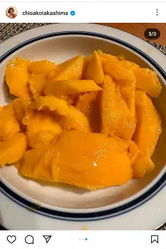 これは、6日に高嶋が自身のインスタグラムで、股関節を痛めたため木佐が自宅に料理を作りに来てくれたと報告も、「何やっても雑な人だと言うのは、マンゴーの切り方でわかると思いますが…」と木佐が切ったマンゴーの写真を披露したことへのリベンジ。