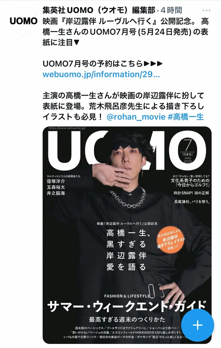 映画「岸辺露伴 ルーヴルへ行く」の完成報告会見に出席した高橋一生 Photo by スポニチ 高橋一生の「岸辺露伴」クオリティーにファン驚き「もはや岸辺露伴なのか… ギャラリーで見る この記事のフォト 2023年05月15日の画像一覧 もっと見る 2023年05月15日の画像をもっと見る