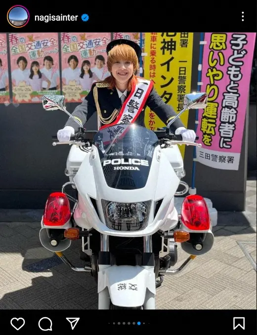 「何かの間違いじゃなくて、ホンマやねん うちが誰よりも一番、ホンマか?って思ってたし 【春の全国交通安全運動(5月11日~5月20日)】で、三田警察署の一日署長をさせて頂いた 去年の10月には【特殊詐欺根絶キャンペーン】で、小岩警察署の一日署長もさせて頂いてる 一日署長、二回目」と2回目の1日警察署長と報告し、警察官の制服姿の写真をアップした。