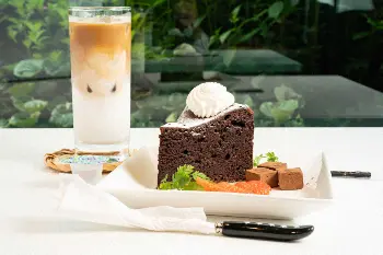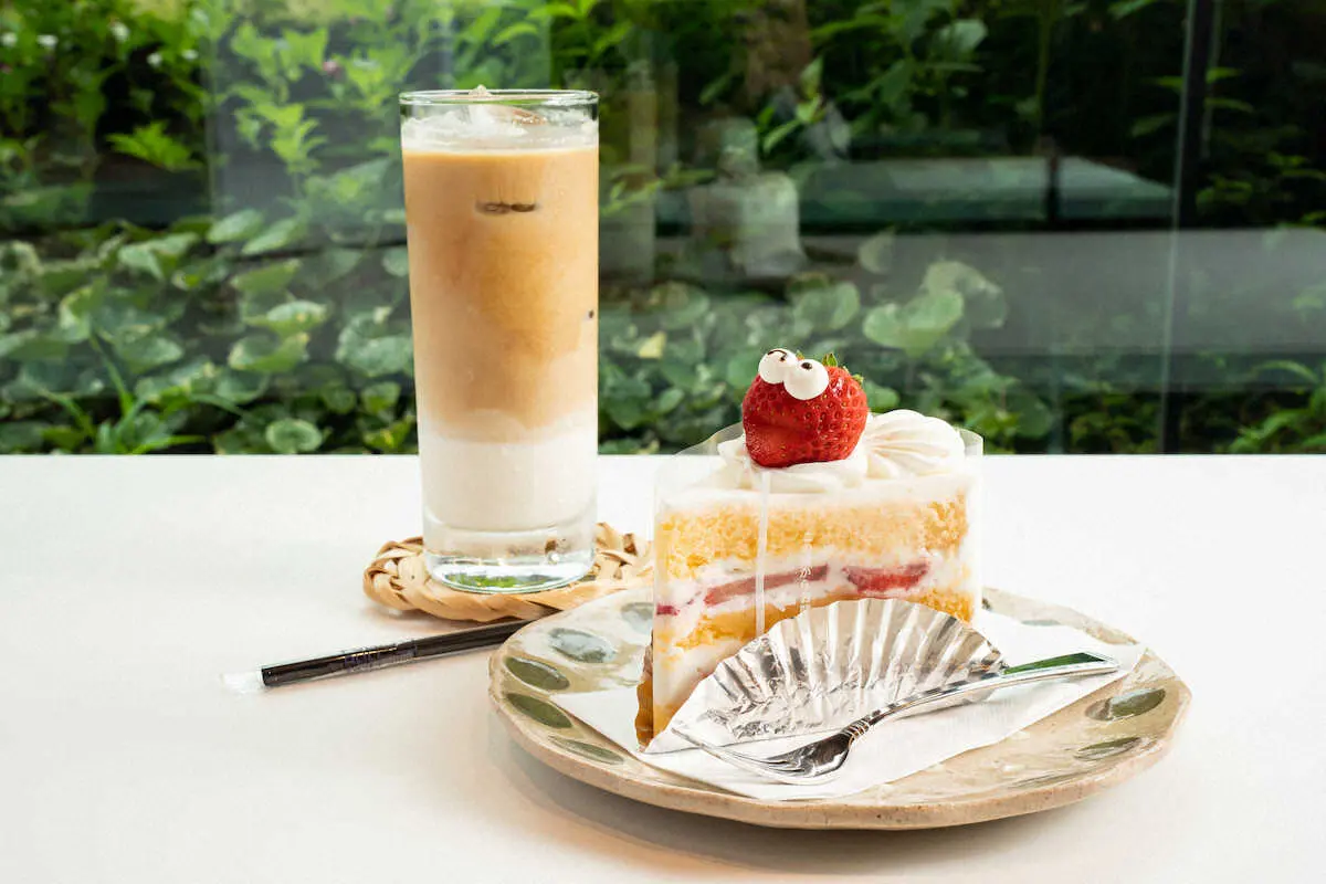 渡辺明名人の午前のおやつ、イチゴのショートケーキとアイスカフェラテ(日本将棋連盟提供)