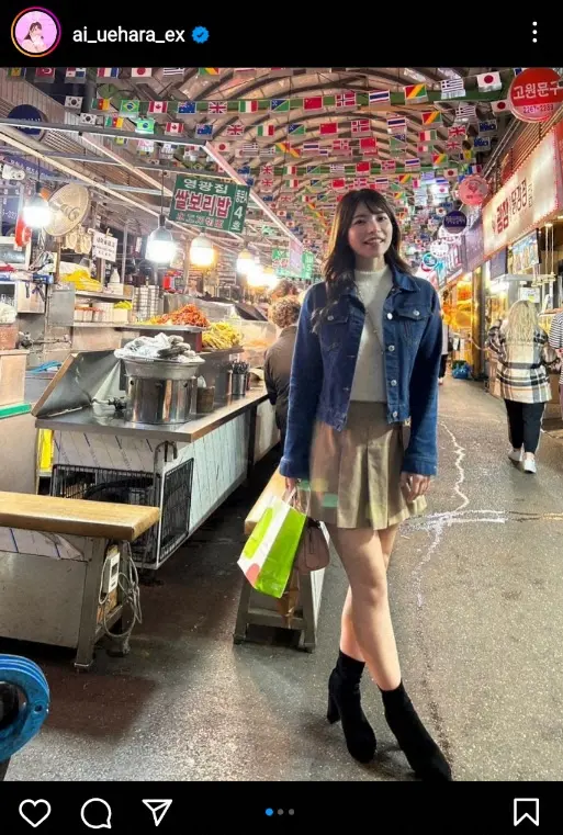 恵比寿マスカッツの元メンバーでYouTuberの上原亜衣(30)が18日までに自身のインスタグラムを更新。韓国の市場でのミニスカ姿を披露した。