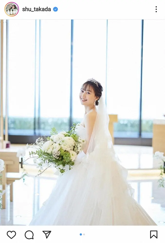 高田は「先日結婚式を挙げました 大好きな方々に囲まれて、この上ない幸せでした」と書き出すと、ウエディングドレス姿でブーケを手にしたショットをアップ。「この日の為に色んな準備をしてきたので、これからちょこちょこ こだわったポイントなどUPしていこうかなと思います もし良かったら質問など受付してみよかな」とつづった。