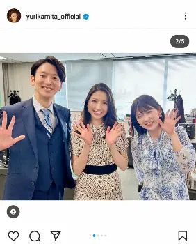 「なんと今日は、ふたりの誕生日の間らへんの日です。どちらかというと、三田の誕生日寄りです。#5月12日 #5月23日」と記し、今月12日に誕生日を迎えた竹内アナ、23日に誕生日を迎える三田アナの写真をアップした