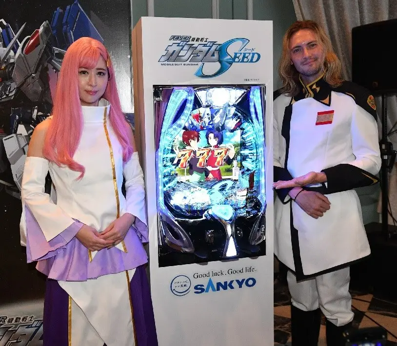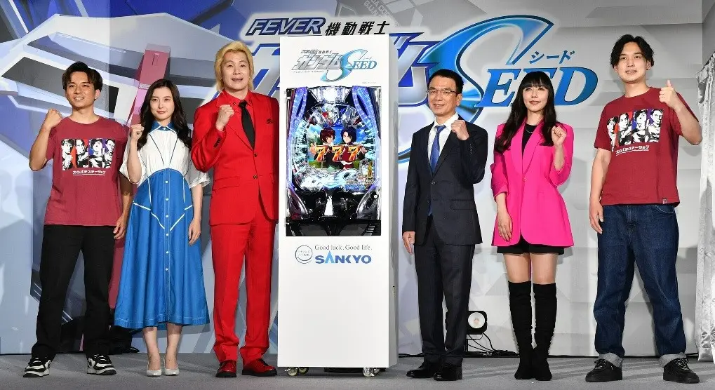 SANKYOは19日、都内でパチンコ新機種「Pフィーバー機動戦士ガンダムSEED」プレス発表会を開催した。お笑いコンビ「メイプル超合金」のカズレーザー(38)、歌手の玉置成実(34)、新CMに出演する時田愛梨(31)らが出席。新枠「フリーダム枠」を筆頭に、美しいCG映像や製品PV、TV CM第二弾を初披露。 8月7日に導入される新機種への期待感が高まった。