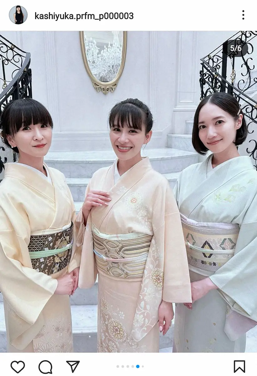 かしゆか しっとり和服姿 あ~ちゃん妹・西脇彩華が披露宴、Perfume3人で美の和装披露も