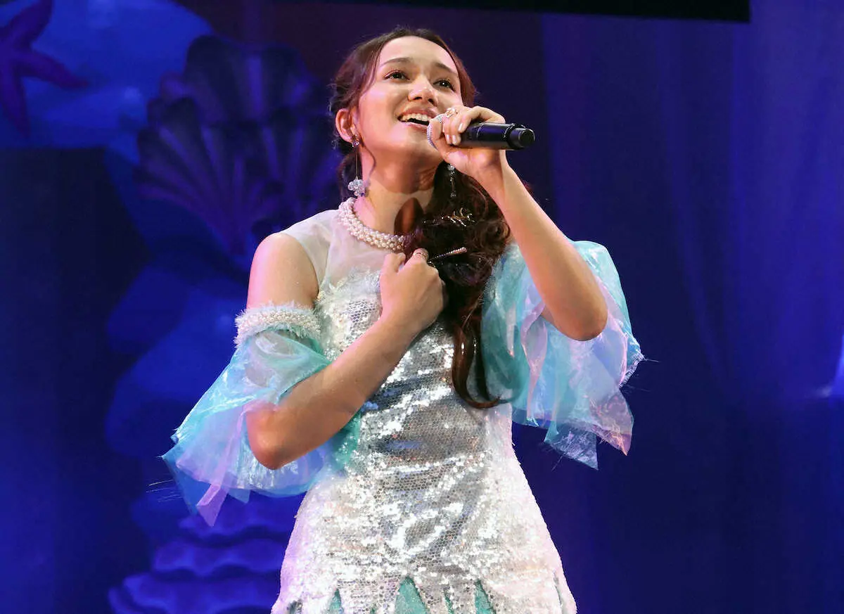 映画「リトル・マーメイド」の声優披露イベントで、「パート・オブ・ユア・ワールド」を披露する豊原江理佳