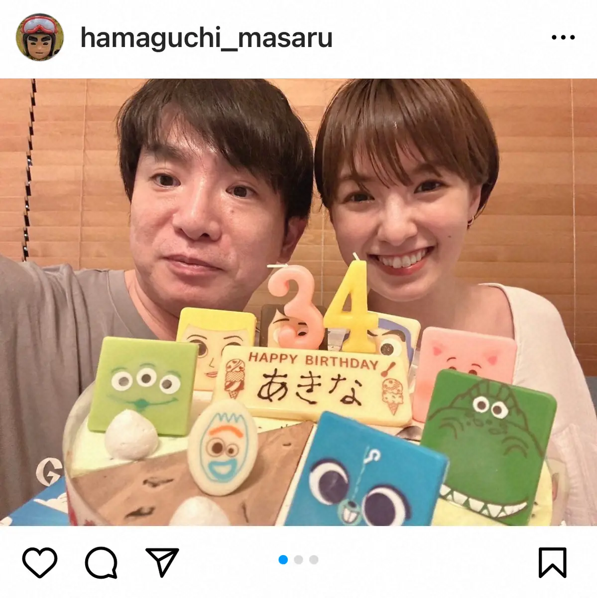 濱口は「#濱口夫婦」「#南明奈 #あっきーな」「#お誕生日おめでとう」「#恒例の #サーティーワン」「#アイスケーキ」とつづり、夫婦ショットを投稿。「#今年は」「#マサルの作ったオムそば で」「#お祝い」と手料理でのお祝いを報告した。