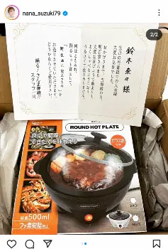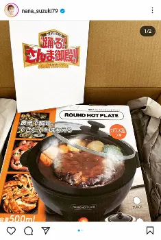 鈴木は「皆さんに嬉しい報告です」とし「踊るさんま御殿から、事務所に踊るヒット賞が届きましたー」とし、「新生活に役立つもの」として贈られた電気グリルラウンドホットプレートの写真を投稿。「めちゃめちゃ嬉しいです 大切に使わせていただきます ありがとうございます」と続けた。