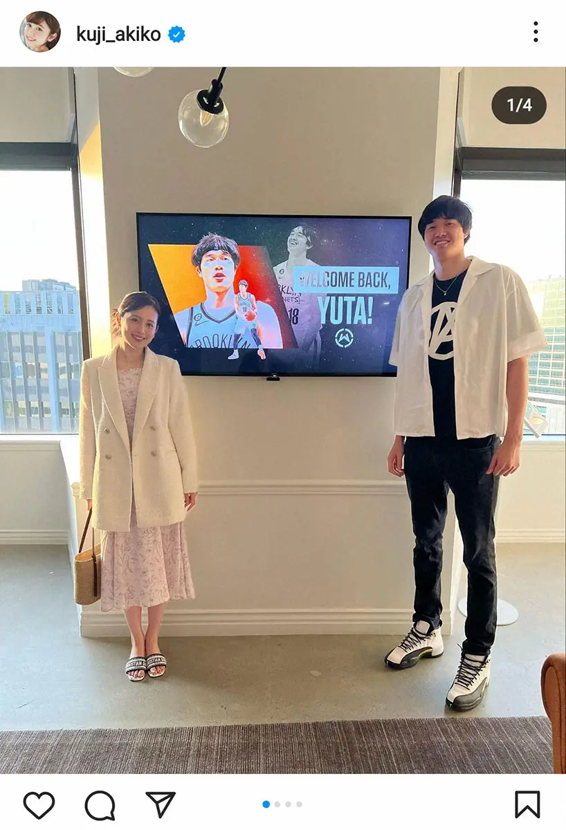 久慈暁子 NBAネッツ・渡辺雄太と結婚1周年を2ショットで報告 「ラブラブ」「幸せそのもの」の声