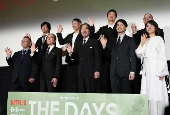 <「THE DAYS」ワールドプレミア舞台あいさつ>フォトセッションで手を振る(前列左から)西浦正記監督、小日向文世、役所広司、竹野内豊、石田ゆり子、(後列同)増本淳プロデューサー、小林薫、遠藤憲一、中田秀夫監督(撮影・木村 揚輔) Photo by スポニチ 役所広司 カンヌ男優賞受賞から“凱旋” 共演者、観客の祝福に「皆さんの… ギャラリーで見る この記事のフォト 2023年05月30日の画像一覧 もっと見る 2023年05月30日の画像をもっと見る