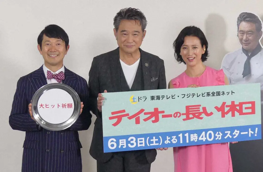 各話ごとに、主人公が作中内のドラマの役衣装で登場するという、船越の“変化”も見どころの一つ。わずか数分のプロゴルファー役のシーンを演じるためにレッスンにも通ったといい、「(作中の)テイオーは長い休日ですが、こちらは全く休日がありません」と笑っていた。