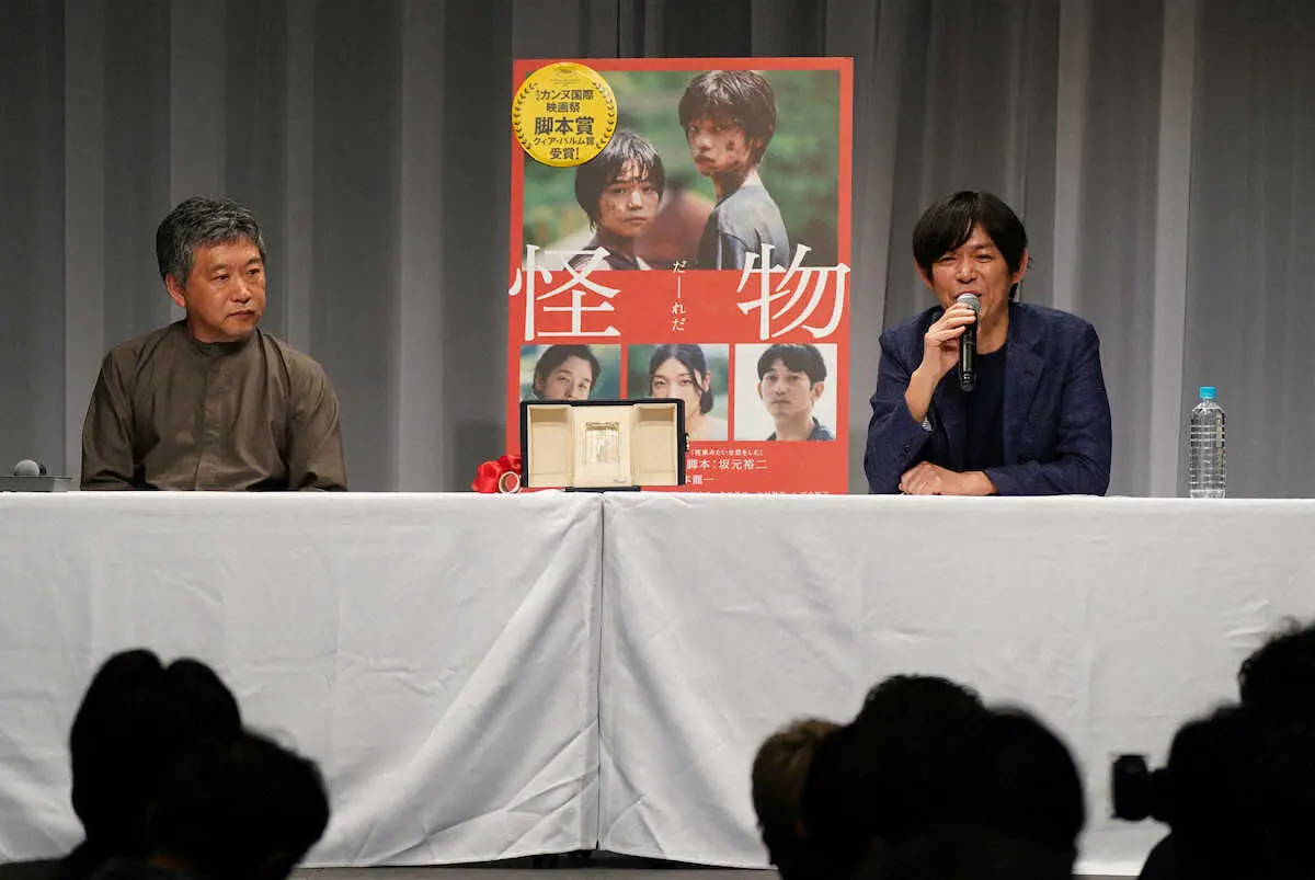 ≪「自分には無理…」是枝氏の手腕称賛≫テレビドラマを主戦場としてきたが、映画に対する思いも強かった坂元氏。1996年には「ユーリ」で映画監督デビュー。「その時に全く監督という仕事に向いていないということが分かり、それ以来(監督は)やるものかと思い30年近くたちました」と回顧。時の経過とともに「今なら(監督を)できるんじゃないか」と思っていたというが「今回、是枝さんの仕事を見てこれは自分にはできない、無理だなとはっきり分かりました」とその手腕を称賛した。