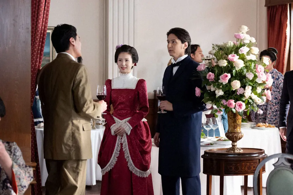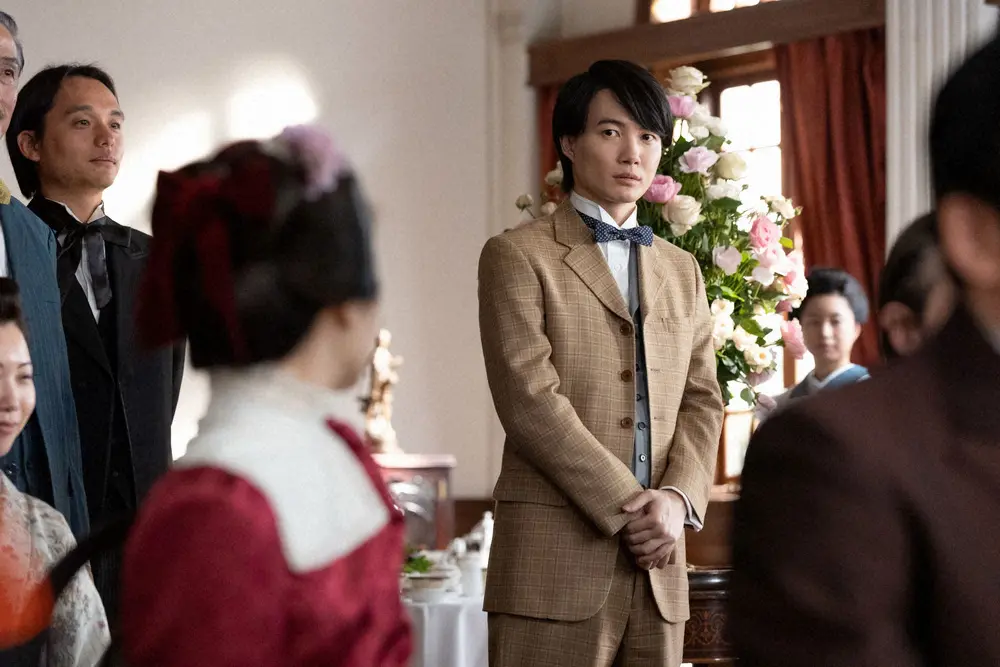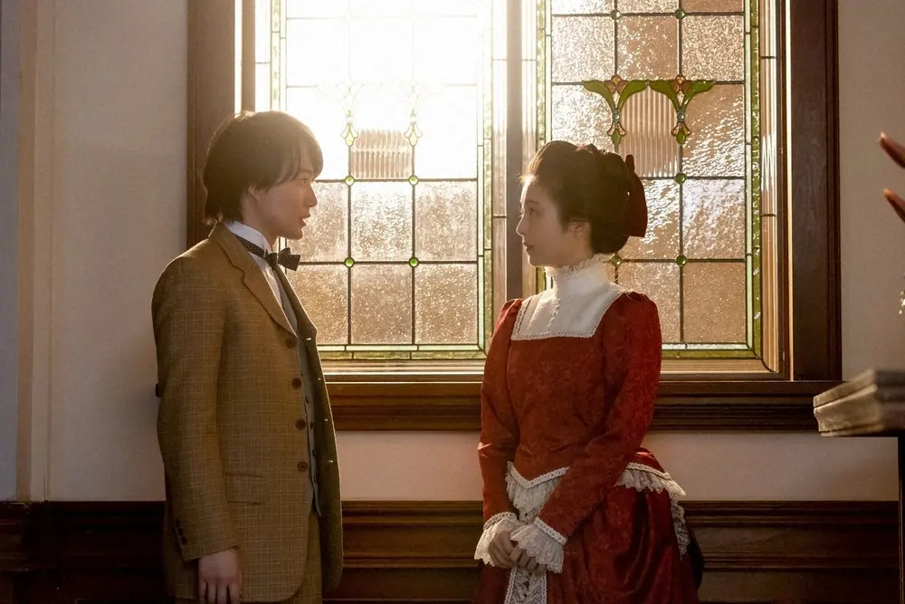 連続テレビ小説「らんまん」第44話。高藤雅修(伊礼彼方 )と寿恵子(浜辺美波・左)(C)NHK