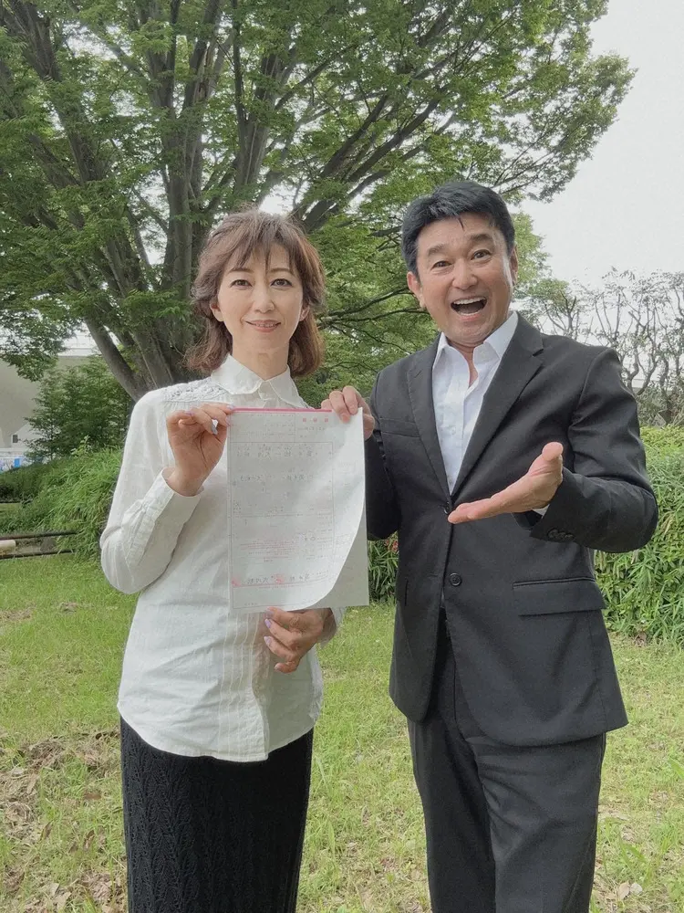 新田は「5月8日に自分が還暦を迎えた日に事実婚からケジメ婚の発表をさせていただいてからはや3週間。諸々の準備が相整い、本日やっと婚姻届を杉並区役所に提出して参りました」と報告。
