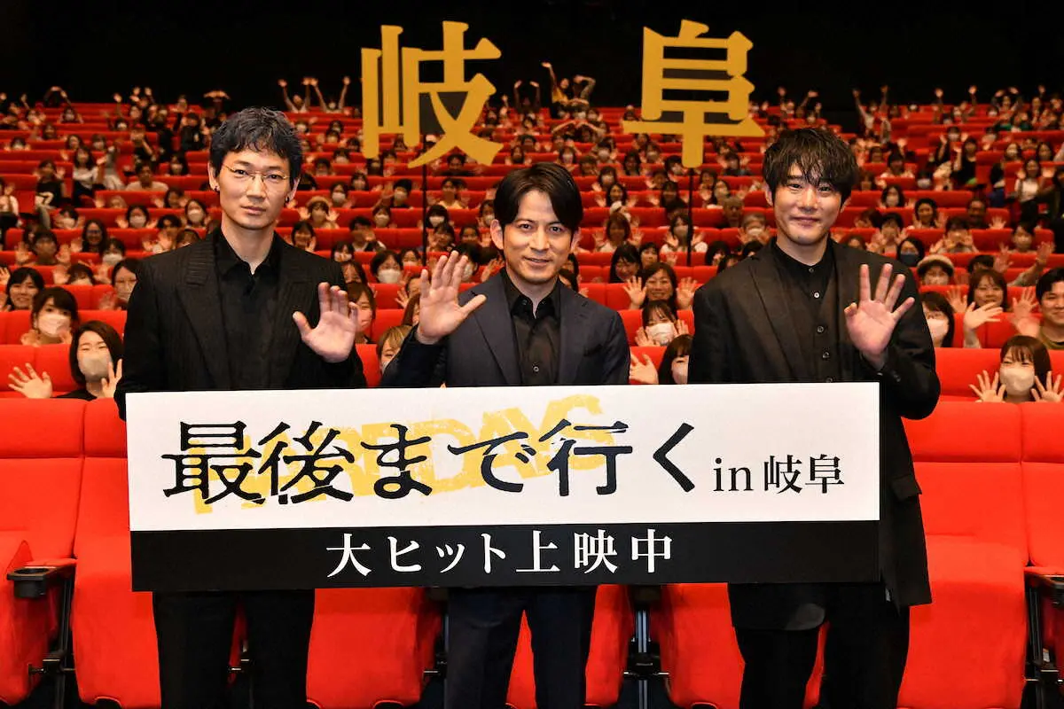 俳優の岡田准一(42)と綾野剛(41)が30日、名古屋市と岐阜県本巣市で映画「最後まで行く」(監督藤井道人)の舞台あいさつを行った。