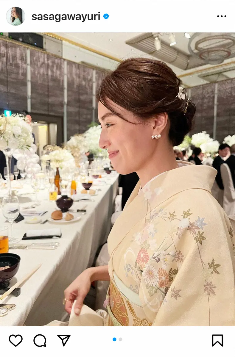 元TBSでフリーの笹川友里アナウンサー(32)が1日までに自身のインスタグラムを更新。友人の結婚式への出席を報告し、美しい和服姿を披露した。